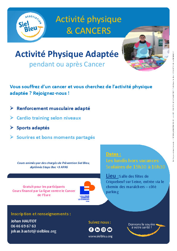 Ce dispositif, gratuit et financé par la Ligue contre le cancer, est ouvert aux habitants de l’Eure et de la Seine-Maritime.