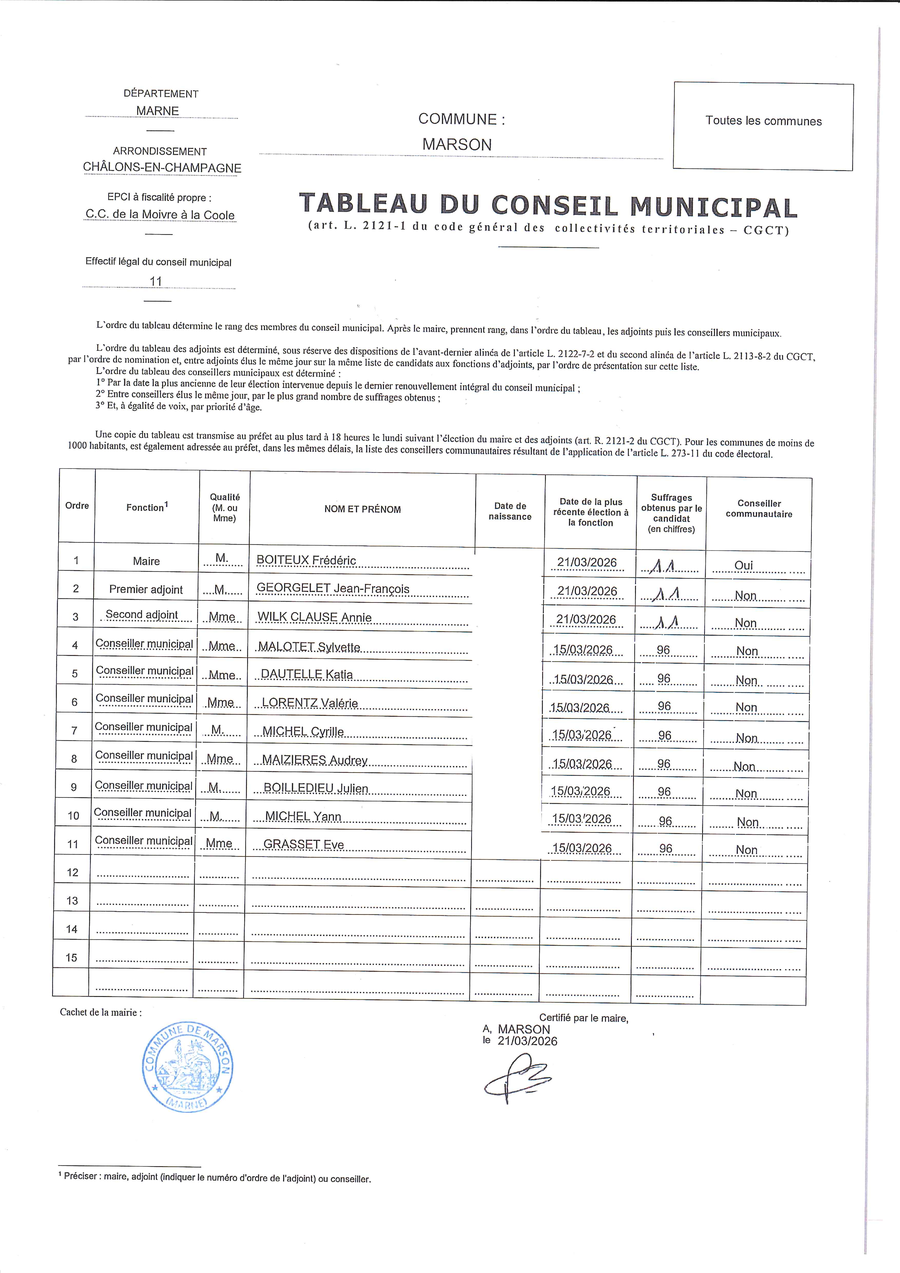 Composition du nouveau conseil municipal