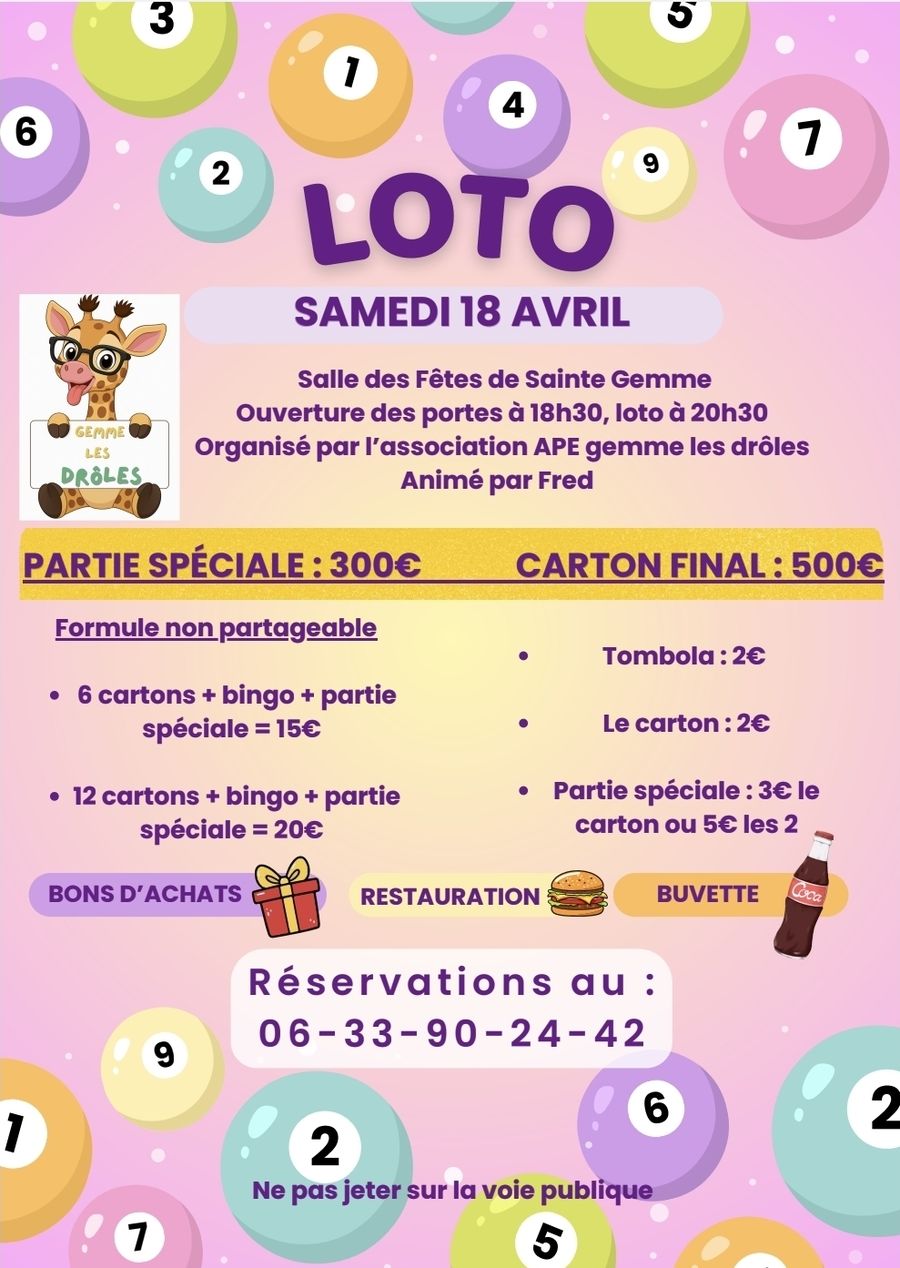 Info: Loto Sainte-Gemme le Samedi 18 Avril