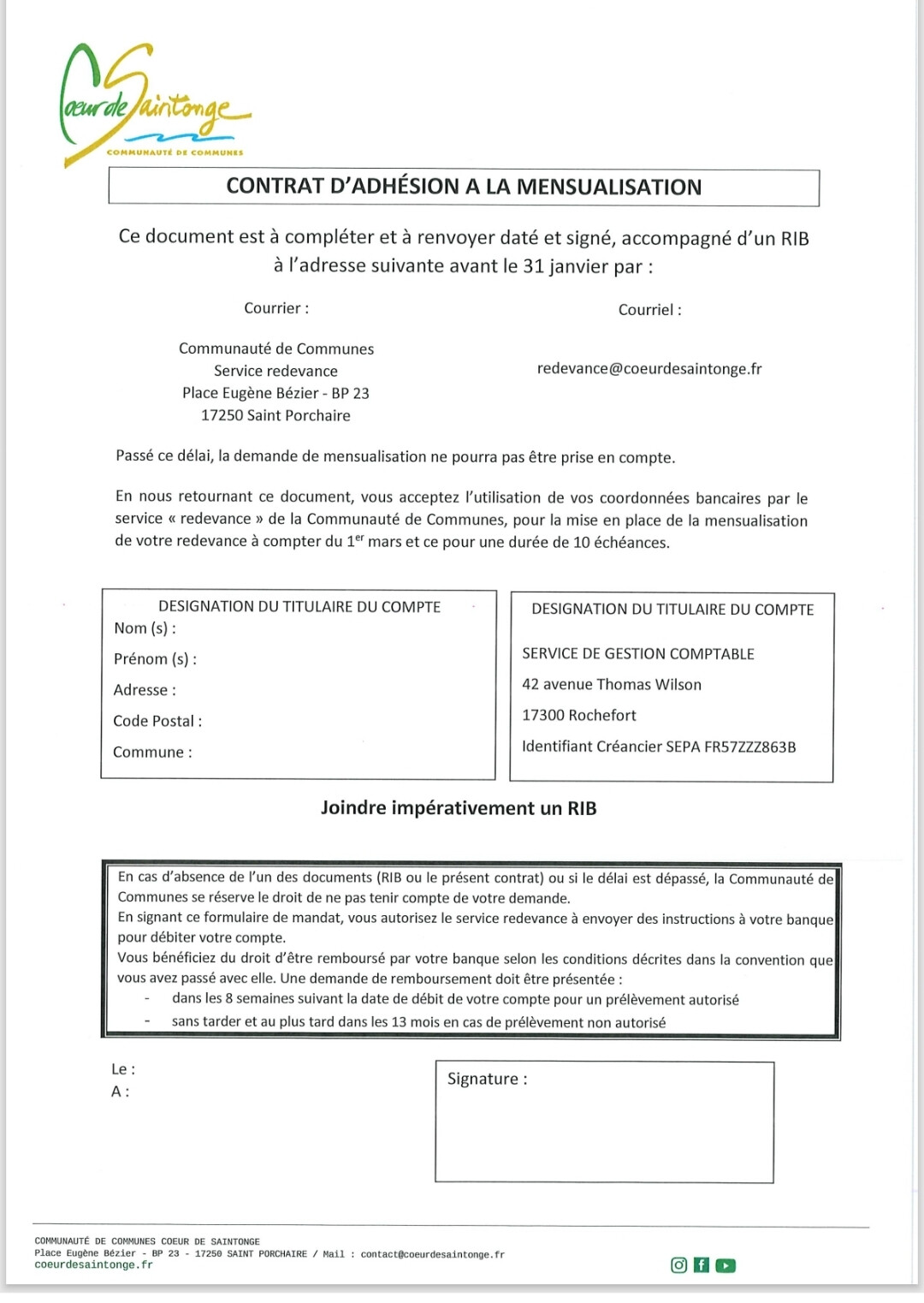 Contrat d’adhésion a la mensualisation des ordures ménagères 👇👇