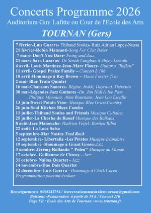 Programme des concerts 2026