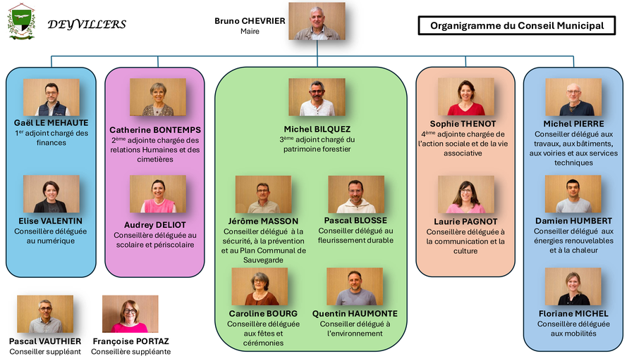 Ci-dessous l'organigramme du nouveau Conseil Municipal