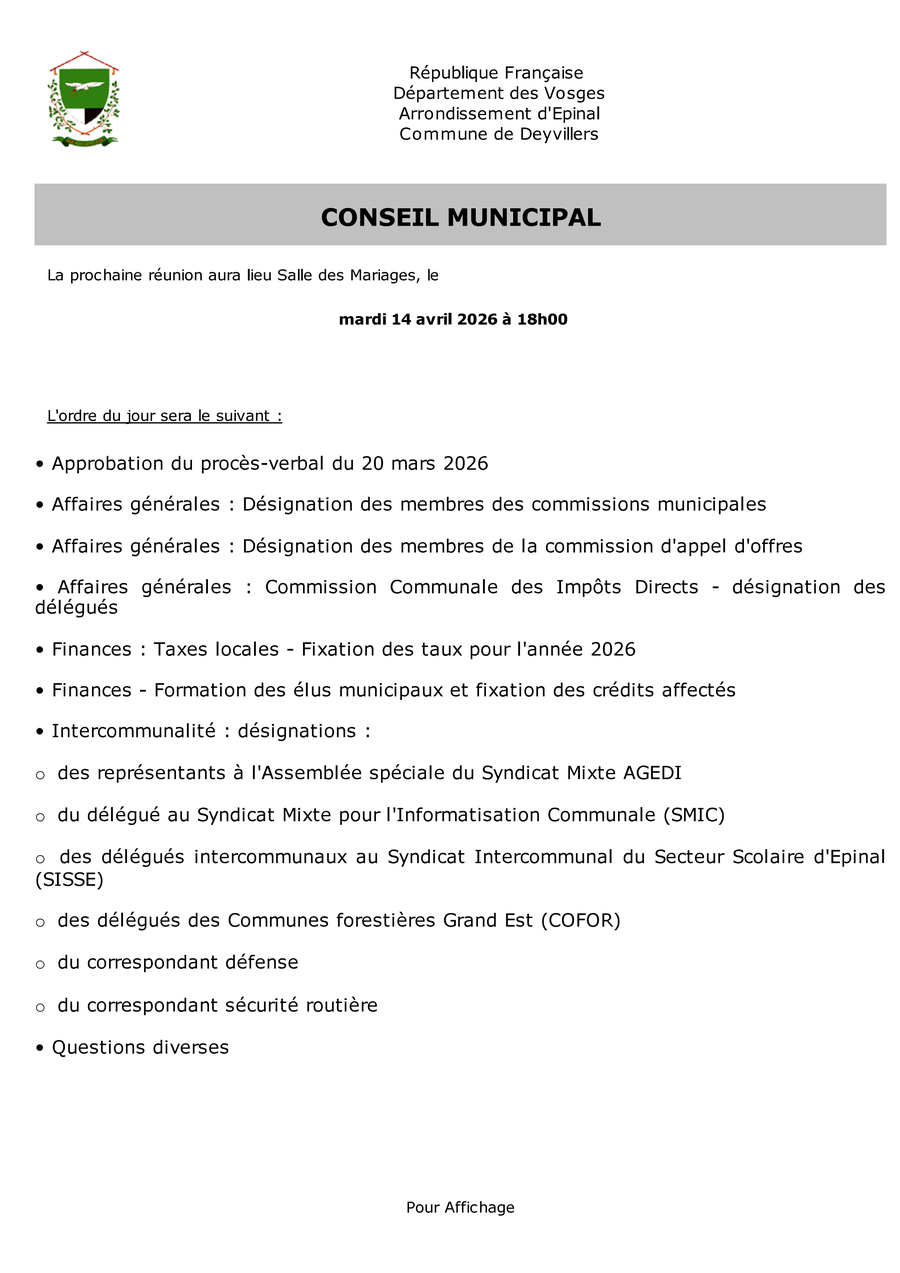 Pour rappel, chaque Deyvilloise ou Deyvillois peut y assister.
