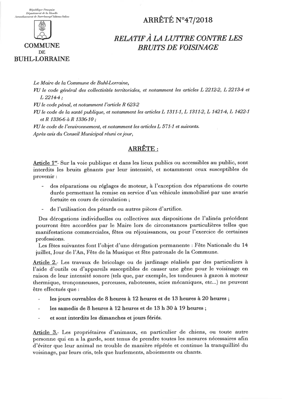 les bruits de voisinage sont réglementés par arrêté municipal