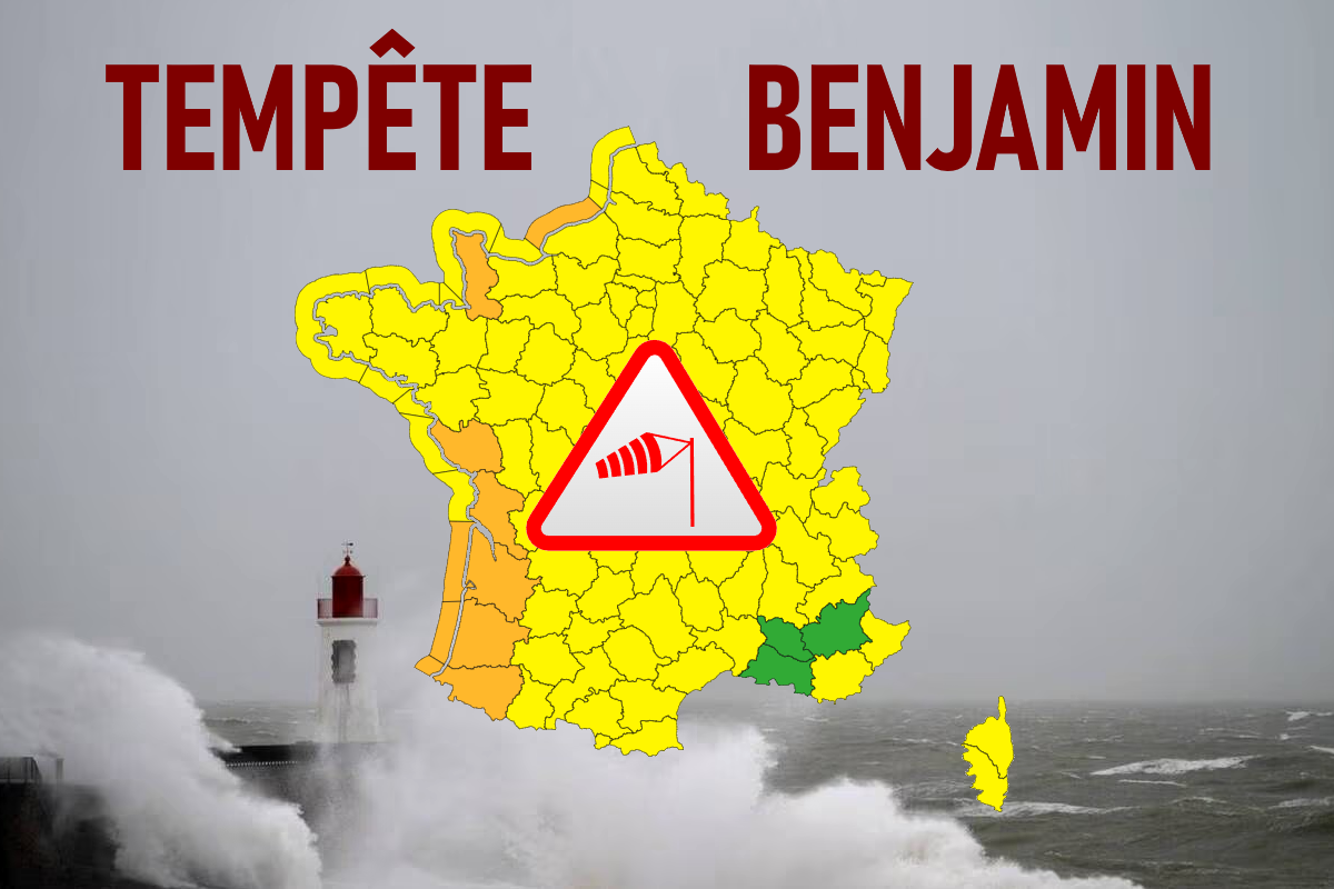 Des rafales pouvant atteindre localement 90-100 km/h sont prévues, accompagnées de fortes pluies.