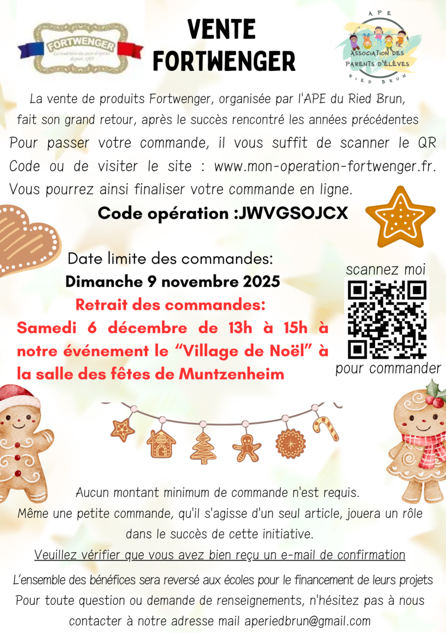 LâAssociation des Parents dâĂlĂšves du Ried Brun vous propose sa vente de produits Fortwenger, la cĂ©lĂšbre maison de pains dâĂ©pices alsaciens đ