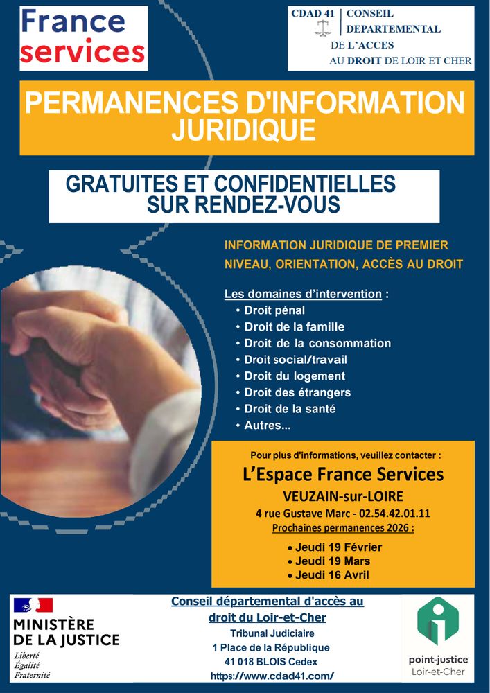 Avec une juriste généraliste du CDAD 41, information juridique, entretiens confidentiels et gratuits.