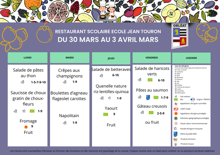 Menu Restaurant Scolaire