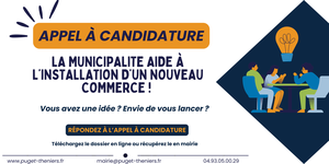 Téléchargez l'appel à projet en version numérique ici 👉️ https://cutt.ly/APPEL-A-PROJET-COMMERCE-PUGET-THENIERS ou récupérez une version papier en mairie !