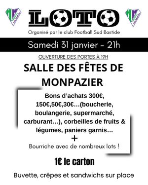 Le club Football Sud Bastide organise son loto avec de nombreux lots à gagner :