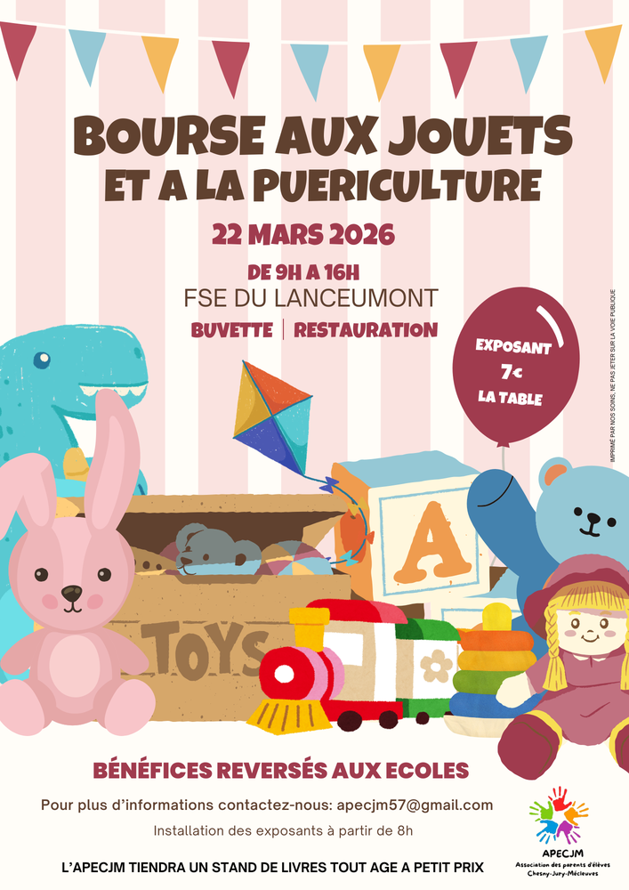 BOURSE AUX JOUETS - APECJM - DIMANCHE 22 MARS 2026