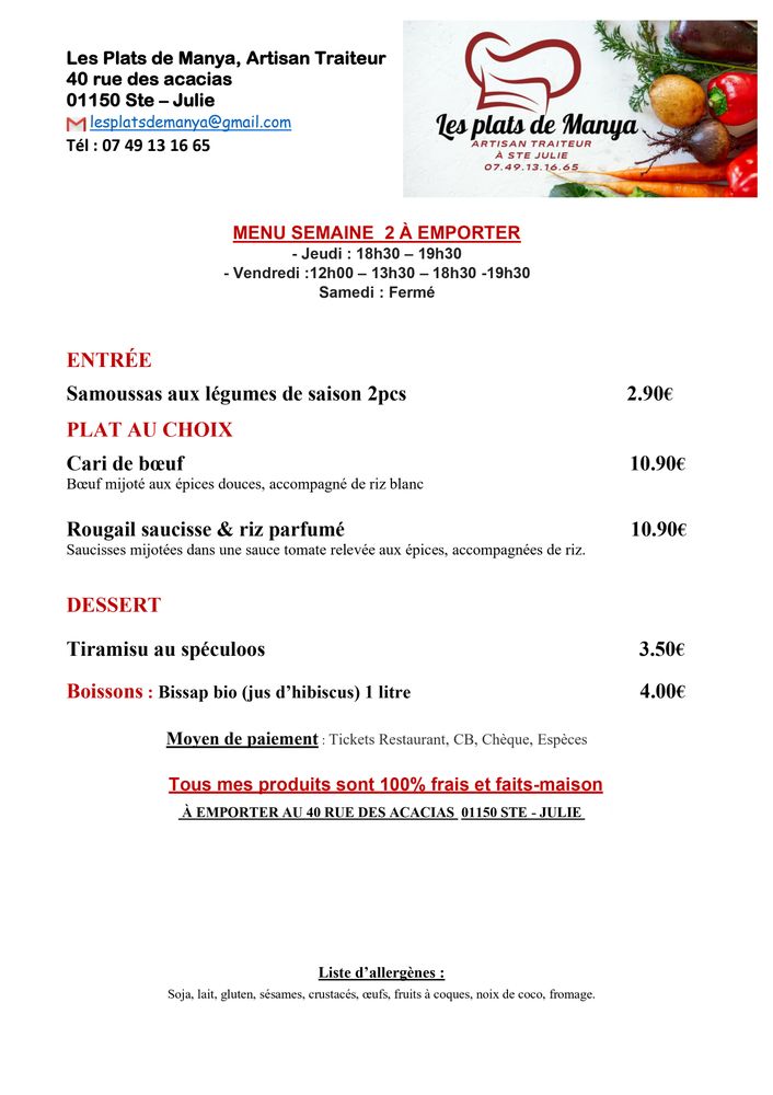 Le menu de la semaine est désormais disponible, avec des plats aux saveurs ensoleillées de La Réunion, riches en épices et en parfums.