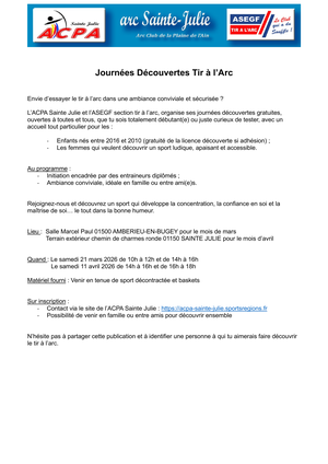 L'ACPA Ste Julie tir à l'arc organise des journées découvertes en mars et en avril 2026
