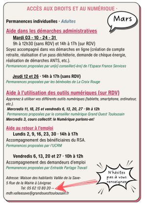 📅 Planning des permanences – Mars 2026 – MDH Vallée de la Save
