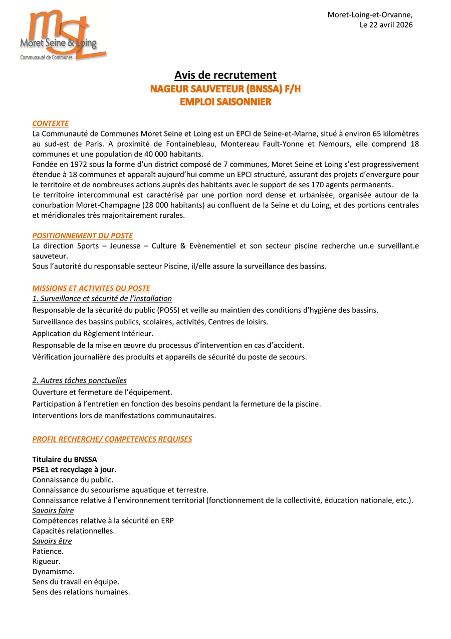 Nageur sauveteur (BNSSA) F/H