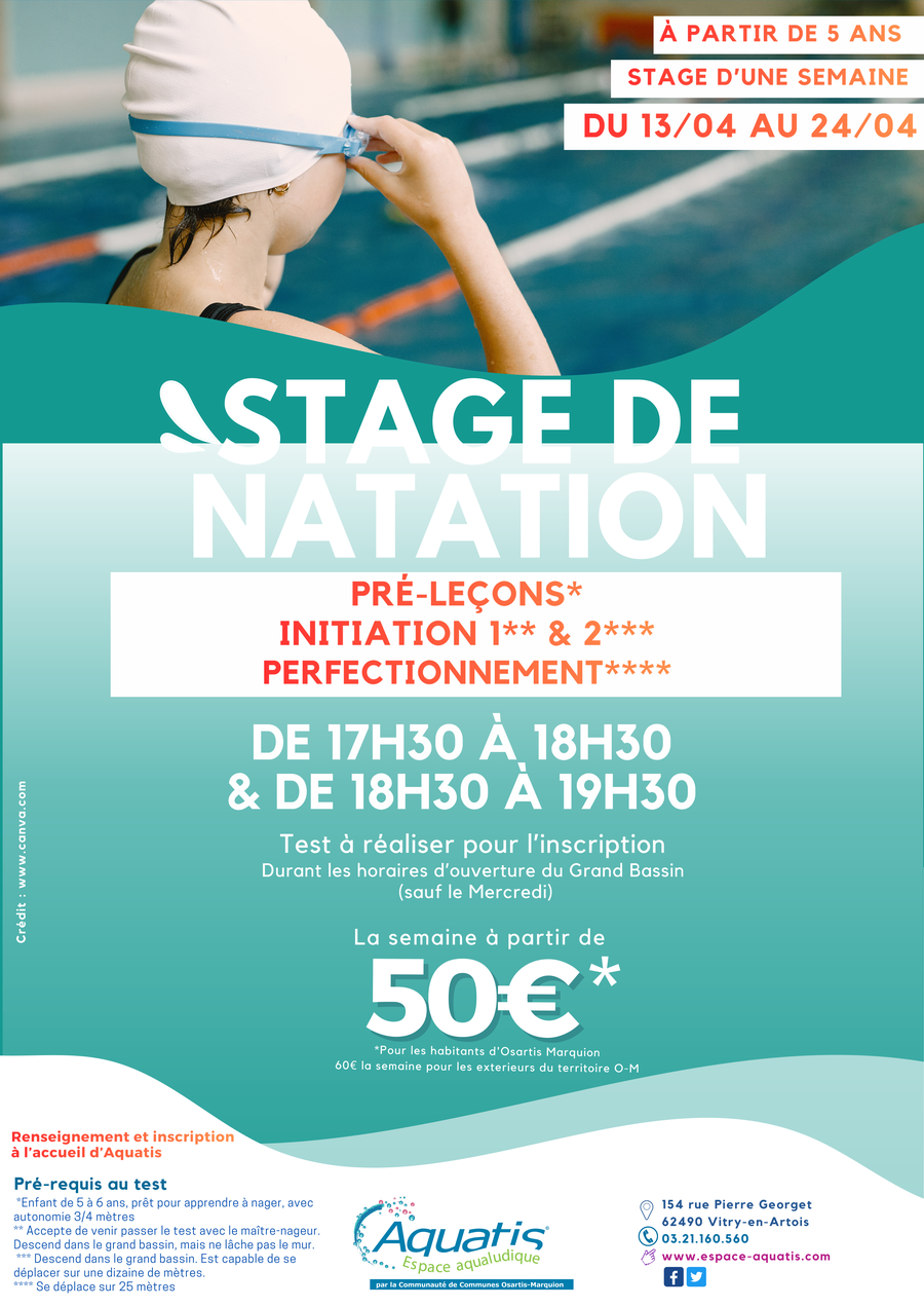 Suite au succès rencontré lors des vacances d’hiver, l’espace aqualudique communautaire Aquatis renouvelle ses stages intensifs de natation à destination des enfants pendant les vacances de printemps.
