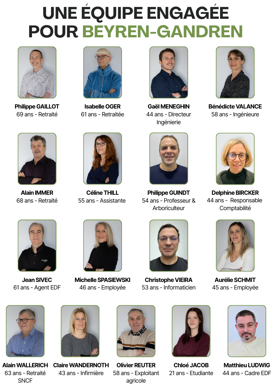 Avec l’ensemble de l’équipe municipale, nous aurons à cœur de mettre en œuvre les projets que nous vous avons présentés. Nous le ferons avec sérieux, transparence et avec la volonté constante de servir l’intérêt général. Soyez assurés que nous resterons en permanence à votre écoute, attentifs à vos idées, à vos attentes et aux besoins de notre village.
