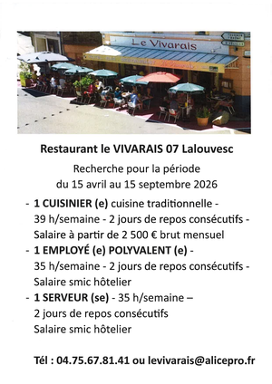 POSTES À POURVOIR - RESTAURANT LE VIVARAIS