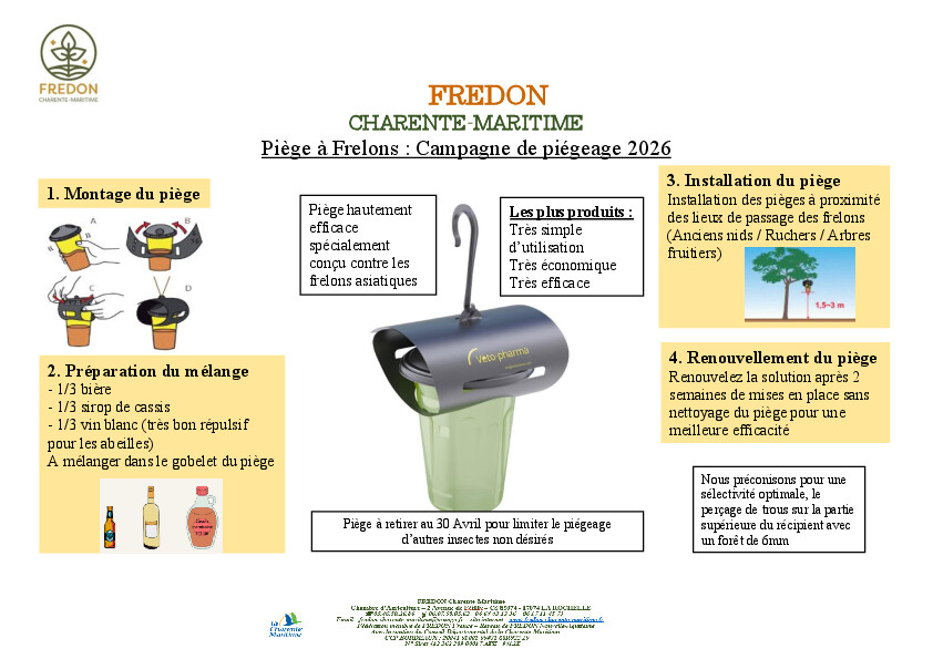 Il reste quelques pièges disponibles en Mairie aux jours et heures d'ouverture.