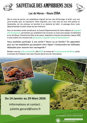 Le dispositif anti écrasement des amphibiens sur la commune recommencera le 14 janvier et se poursuivra jusqu'au 29 mars.
