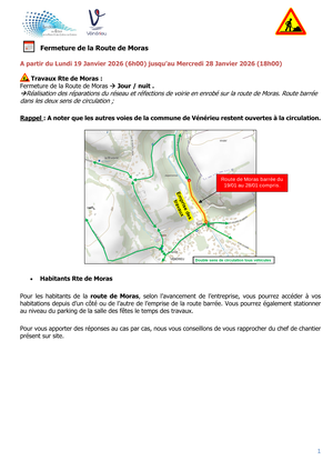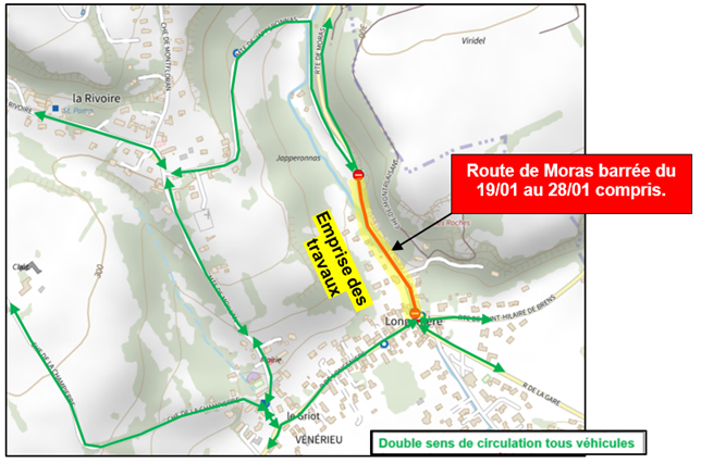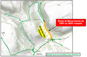 Les travaux de Vénérieu vont durer plus longtemps que prévu. Par conséquent, la route de Moras sera fermée jusqu'au 28 janvier 2026.