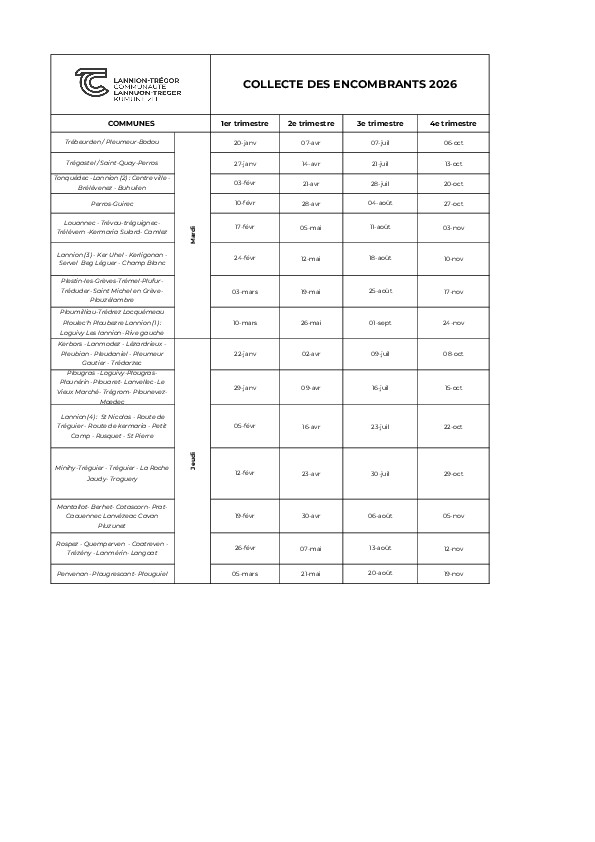 + le calendrier des encombrants 2026