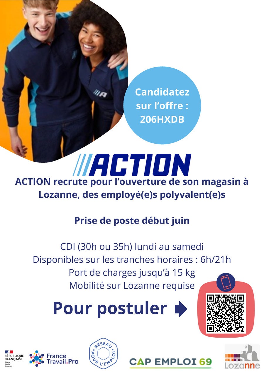 Dans le cadre de son ouverture, ACTION Lozanne recrute plusieurs postes d’employés polyvalents en CDI.