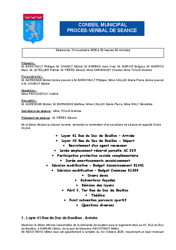 PROCÈS-VERBAL CONSEIL MUNICIPAL