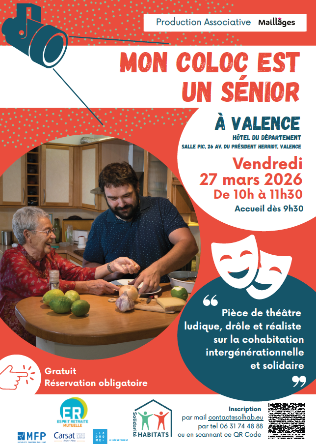 ➡️ Solidarité HABITATS, en partenariat avec Esprit Retraite et l'association Maillâges, vous invite à assister à une représentation théâtrale avec intermèdes musicaux : « Mon coloc est un senior »
