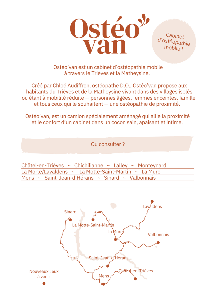 Passage de l'Ostéo Van à Monteynard pour les mois de novembre et décembre.