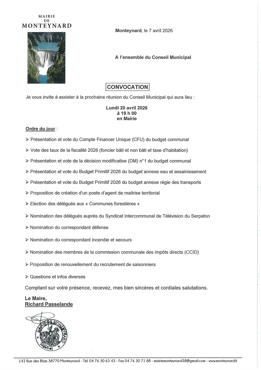 La prochaine réunion du Conseil Municipal se tiendra vendredi 20 avril à 19h en Mairie.