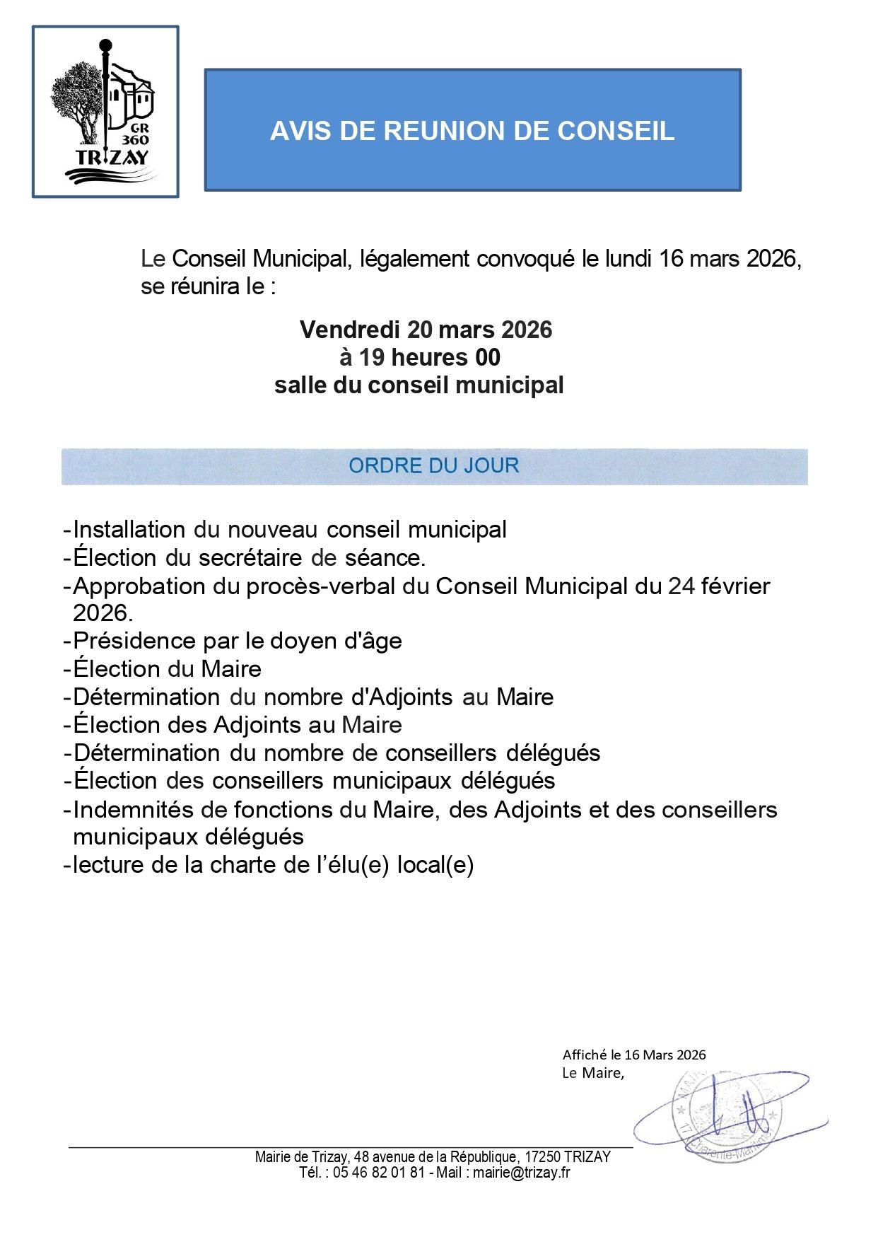 REUNION DE CONSEIL MUNICIPAL 20 MARS 19H00