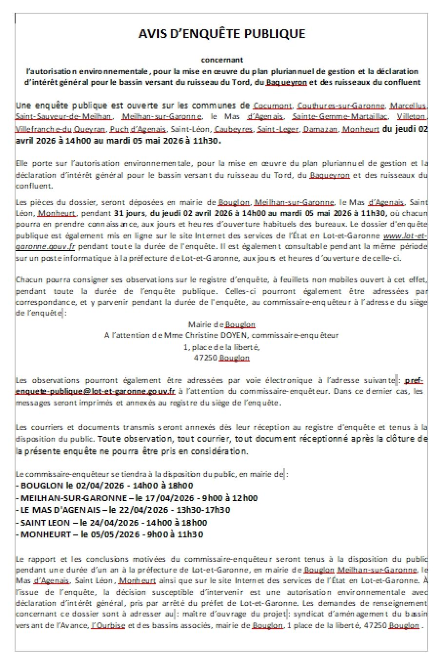 Avis d'enquête publique