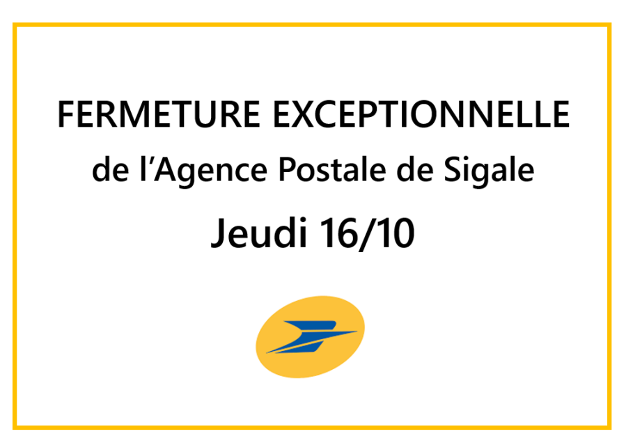 FERMETURE EXCEPTIONNELLE de l'Agence Postale Communale de Sigale
