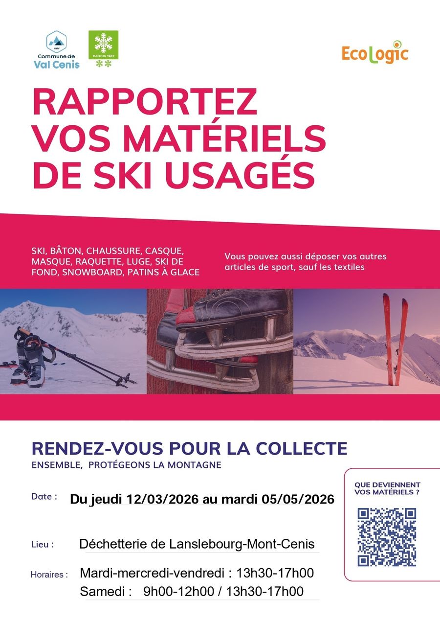 Pour la 3ème année consécutive, une benne de collecte dédiée au recyclage des articles de sport est installée à la déchetterie de Val Cenis (Lanslebourg) jusqu'au mardi 5 mai.