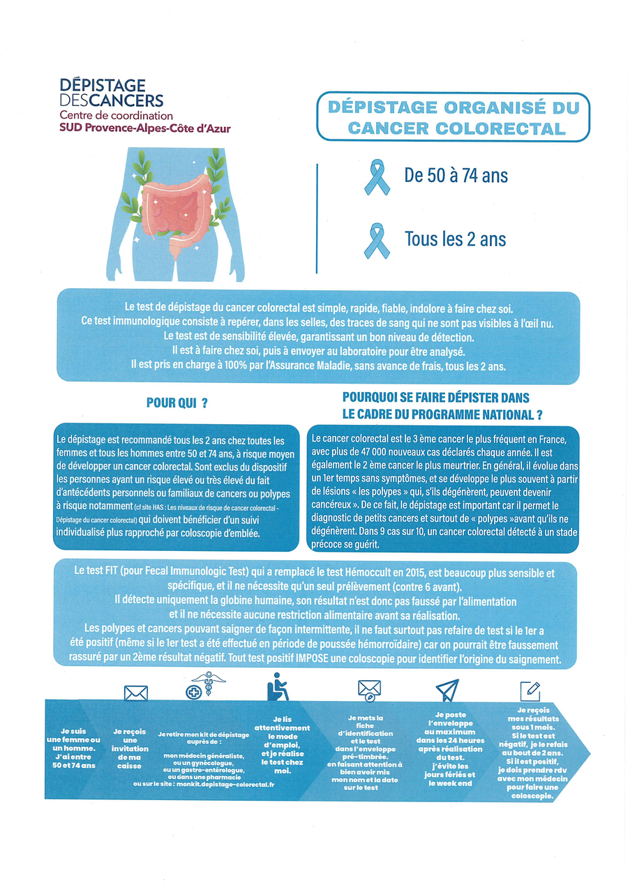 Prenez soin de vous et faîtes le dépistage gratuit, facilité, indolore, à domicile !