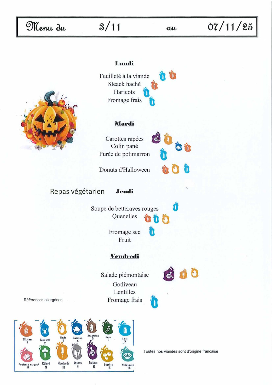 Menus cantine RPI du 3 au 7 novembre 2025