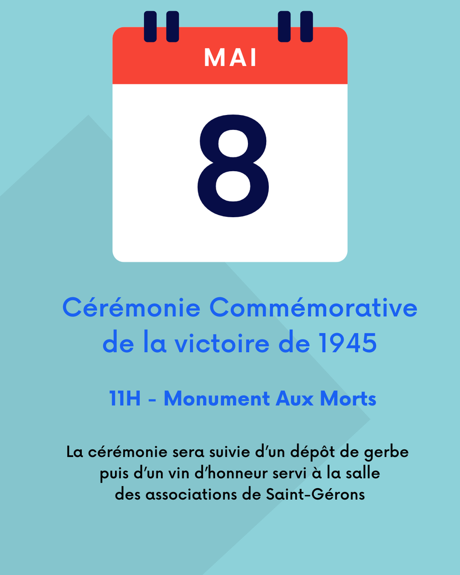 invitent les habitants de la commune à participer à la cérémonie de commémoration de la victoire du 8 mai 1945.