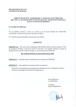 ARRÊTE MUNICIPAL- INTERDICTION UTILISATION STADE