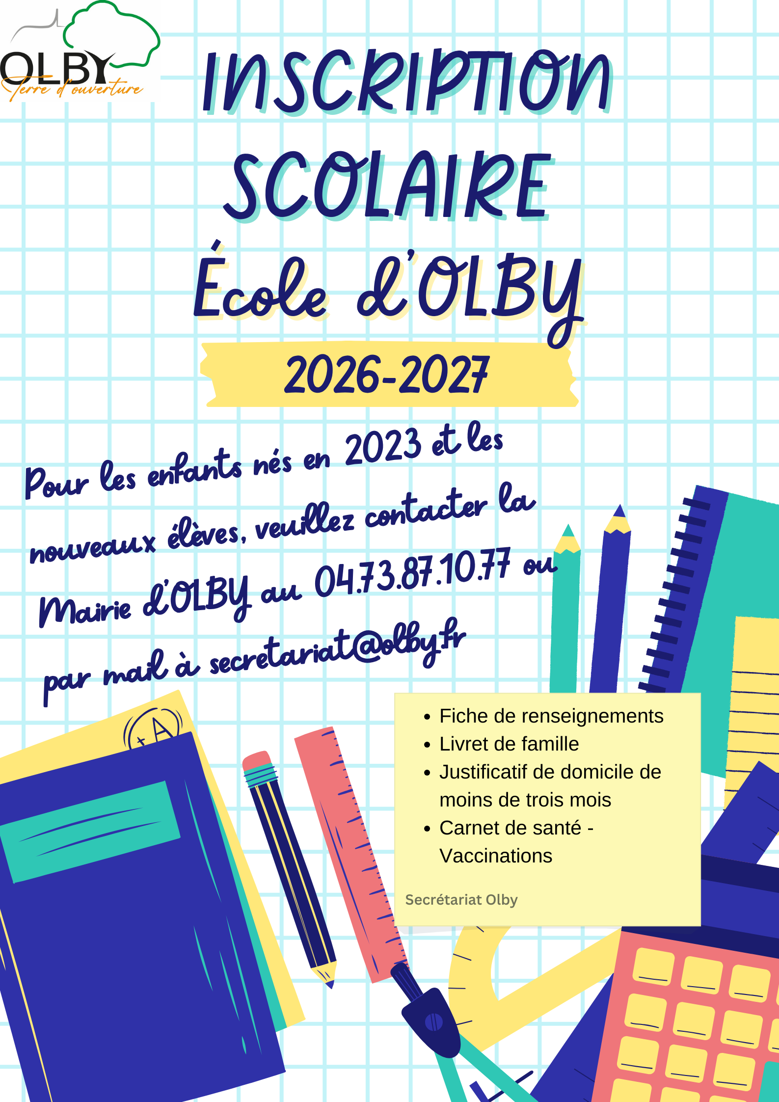 Les inscriptions à l'école publique d'Olby se feront