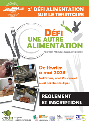 Le CEDER organise un nouveau défi alimentaire "Une autre alimentation" qui démarrera le 2 février. Cet événement soutenu par le Parc naturel régional des Baronnies provençales est une des actions du projet alimentaire territorial. D'autres actions seront menées dans le courant de l'année