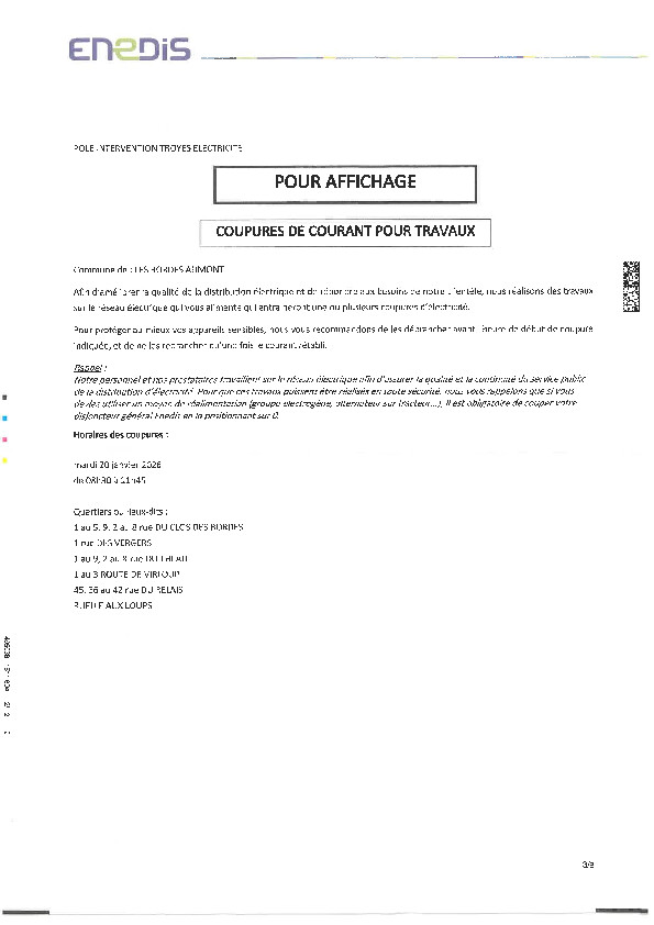 Enédis nous informe d'une coupure de courant