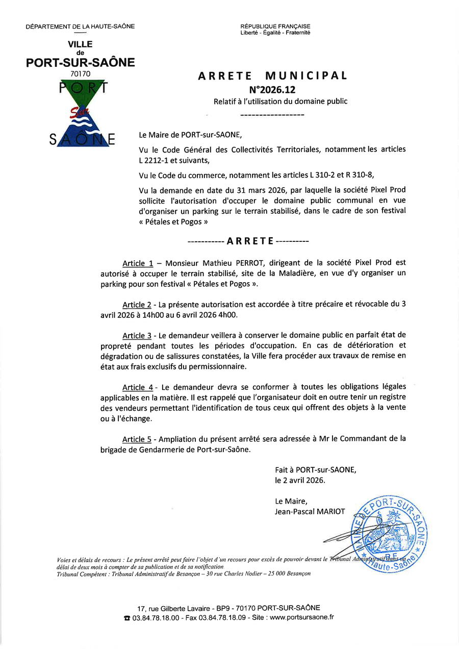 pour permettre le bon déroulement du Festival "Pétales et Pogos" qui se déroule ce week-end, des mesures concernant le stationnement et la circulation sont mises en place :