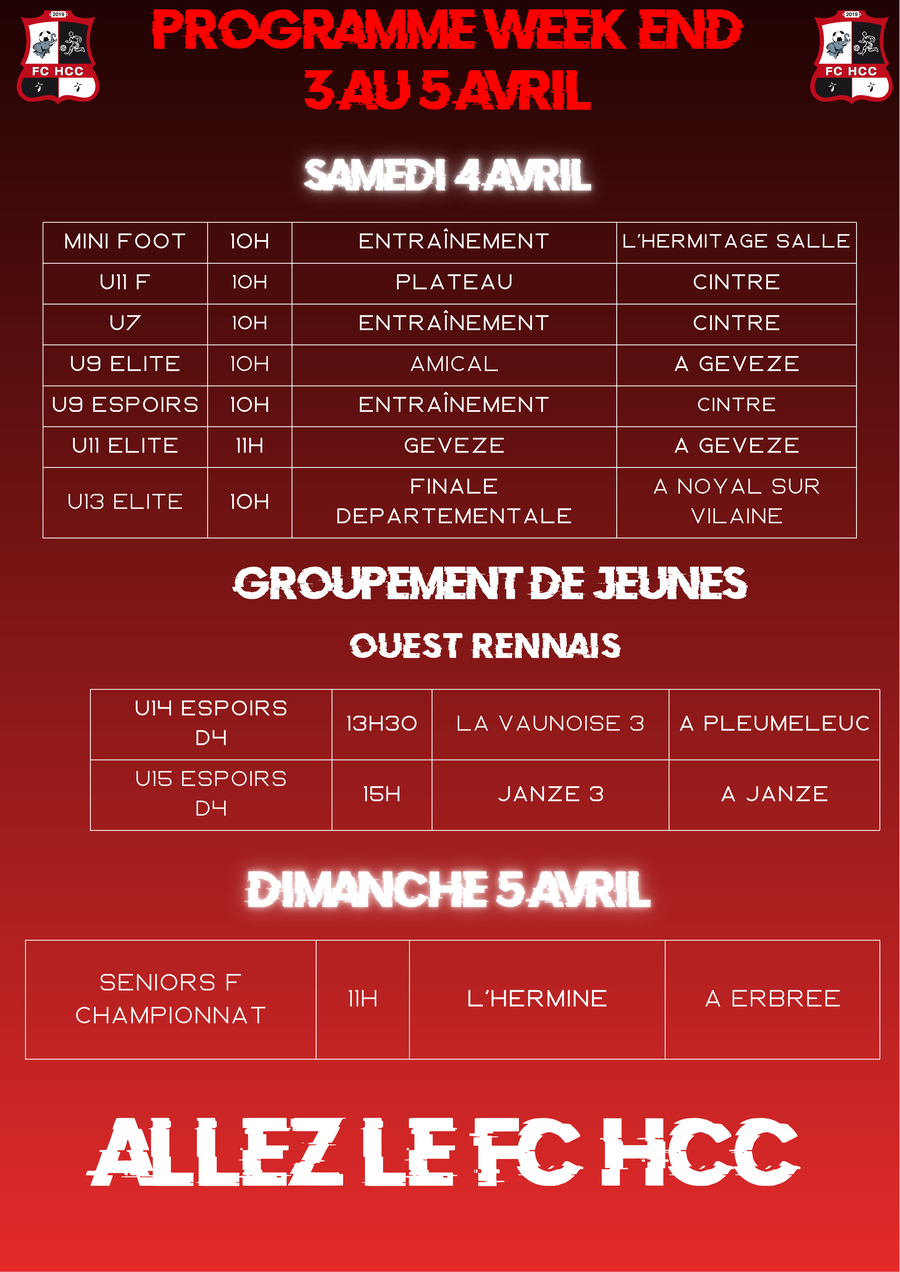 Programme du weekend FC HCC ⚽️