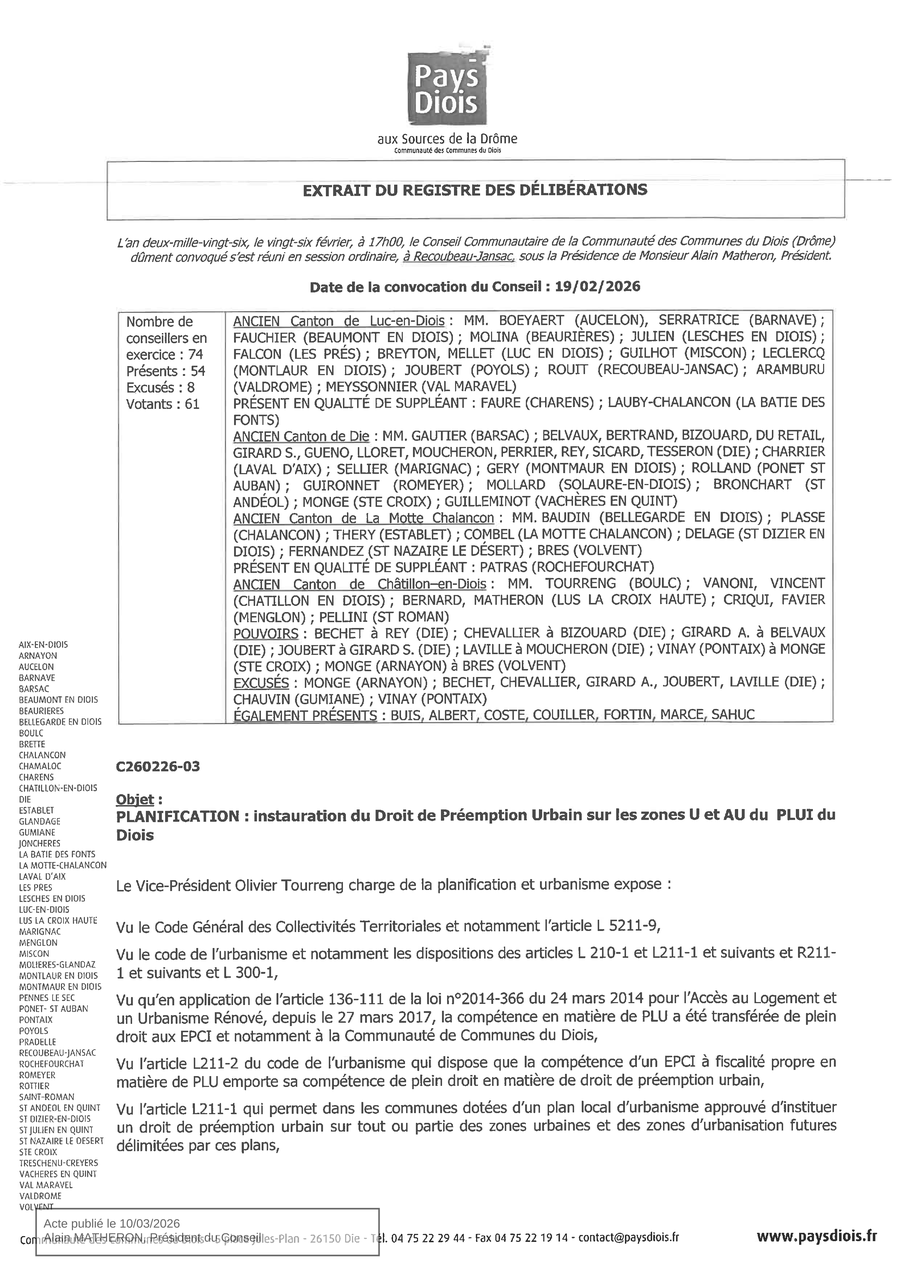 Instauration du DPU zones U et AU du PLUI