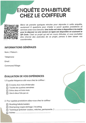 Une coiffeuse réalise une étude d'oportunité, sur notre territoire, en vue d'un projet de salon de coiffure mobile.
