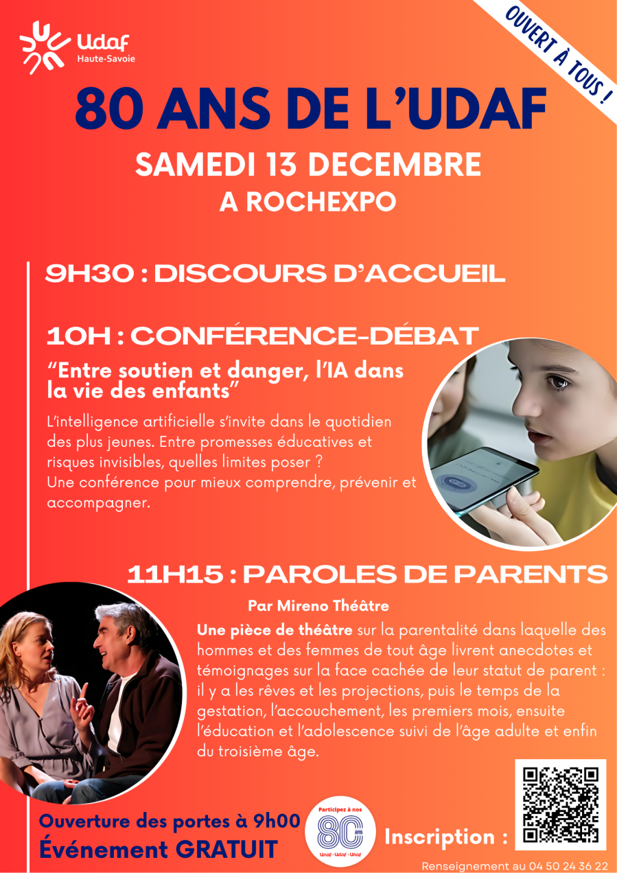 L'UDAF 74 (Union Départementale des Associations Familiales) fête ses 80 ans le samedi 13 décembre 2025 à RochExpo.