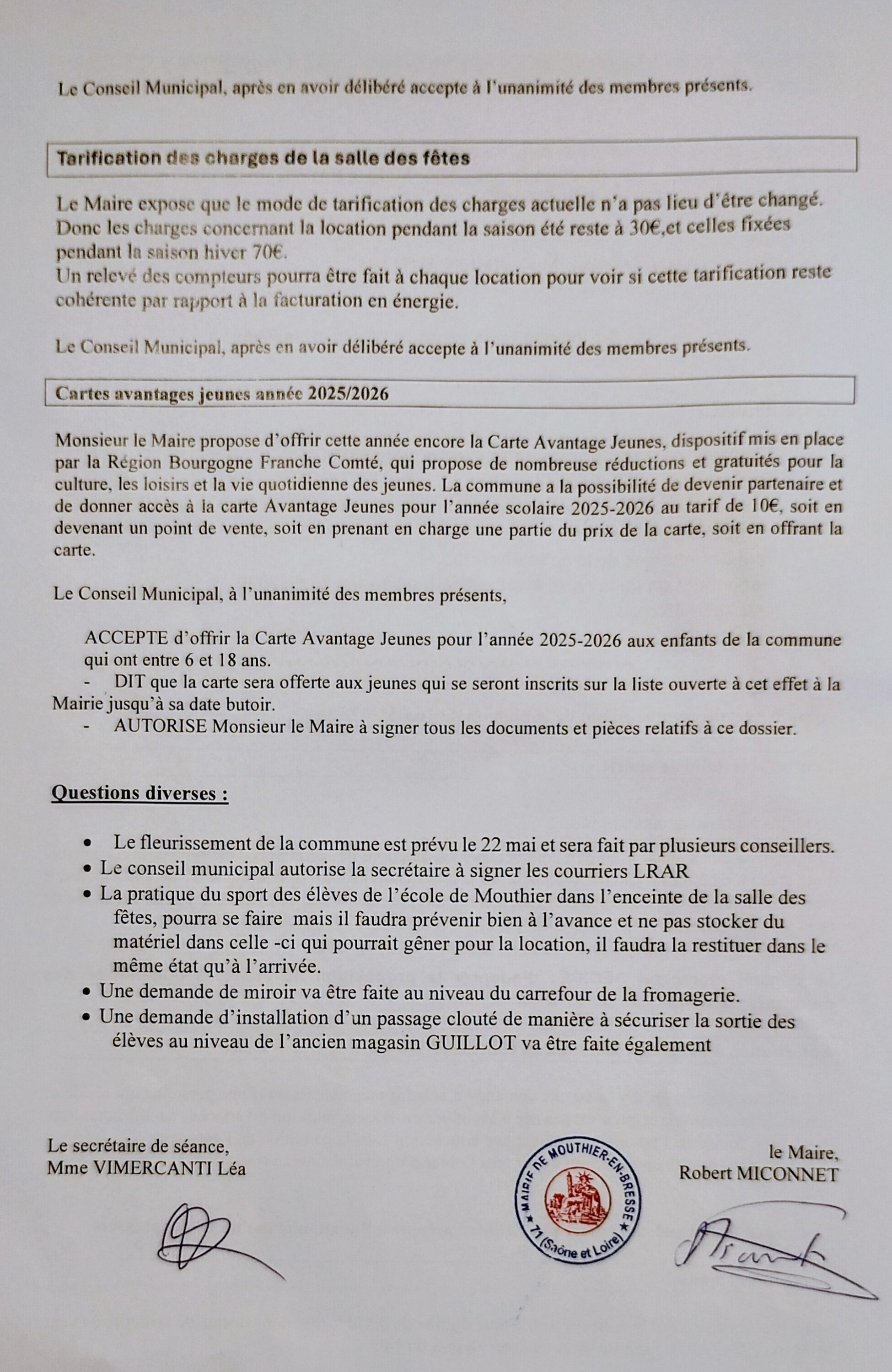 Compte rendu de conseil qui c'est déroulé le 16 mai 2025