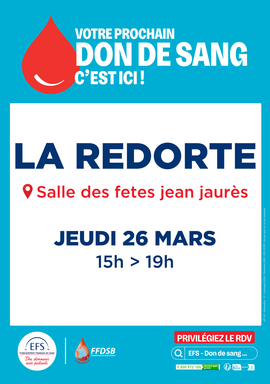 DON DE SANG LE 26 MARS à La Redorte
