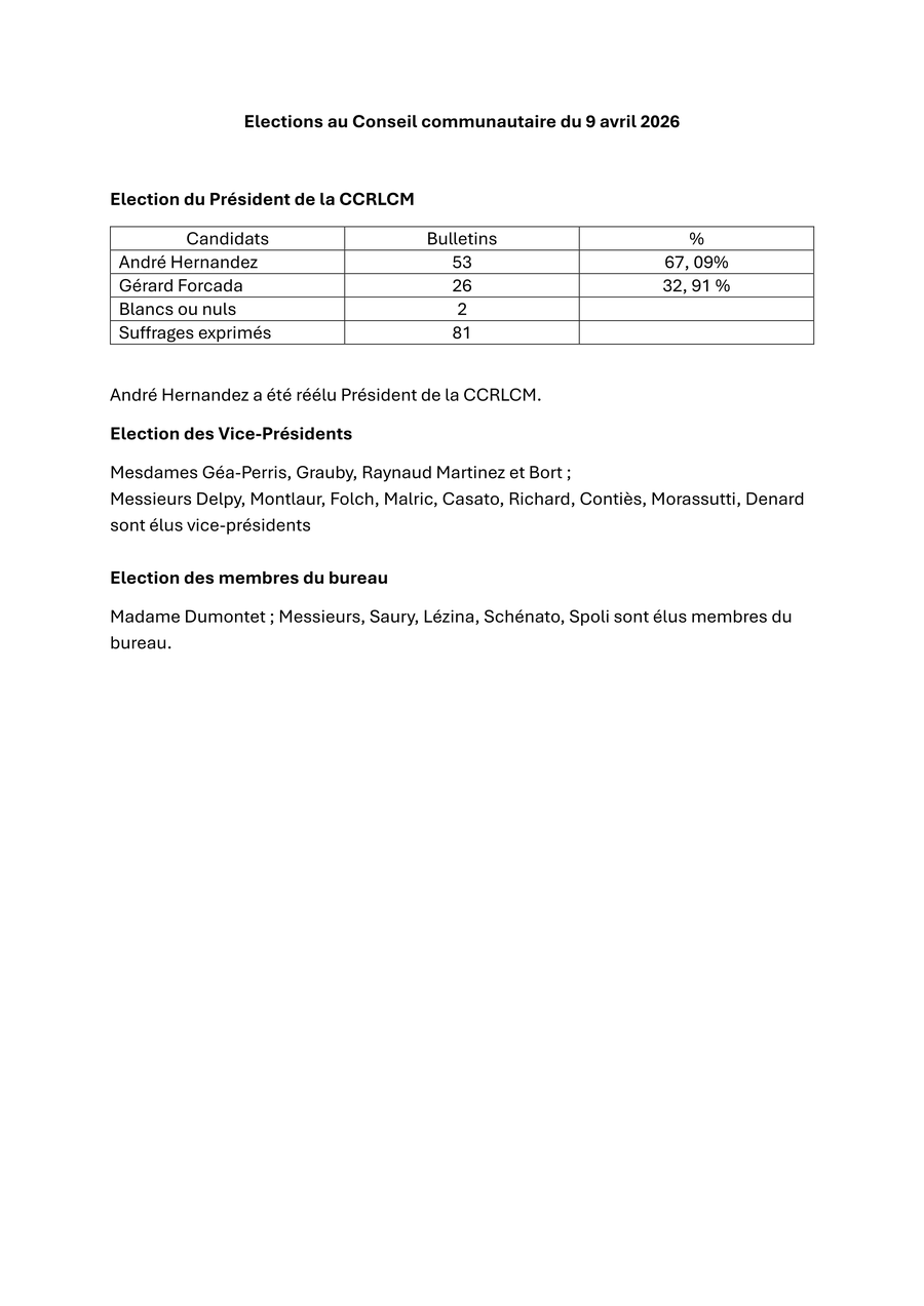 Elections au Conseil Communautaire du 9 avril 2026